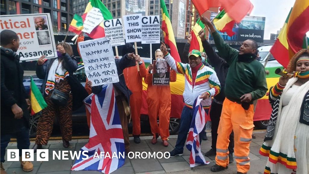 Lammiileen Itoophiyaa dubbii dhiheenya pireezidantiin Ameerikaa waa'ee Hidha Haaromsaa ilaalchisuun dubbataniin aaran Kamisa kaleessaa biyya Ingiliizi, magaalaa Landanitti daanditti bahuun mormii isaanii dhageessisan.
