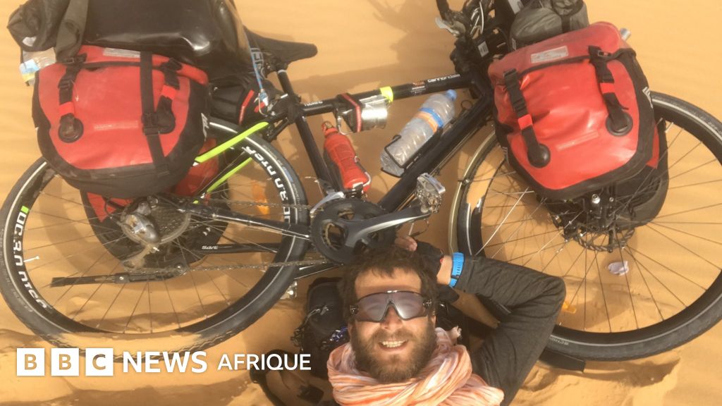 Légende image, L'objectif du journaliste - documentariste turc Hasan Söylemez est de pédaler pour se rendre dans les 54 pays africains