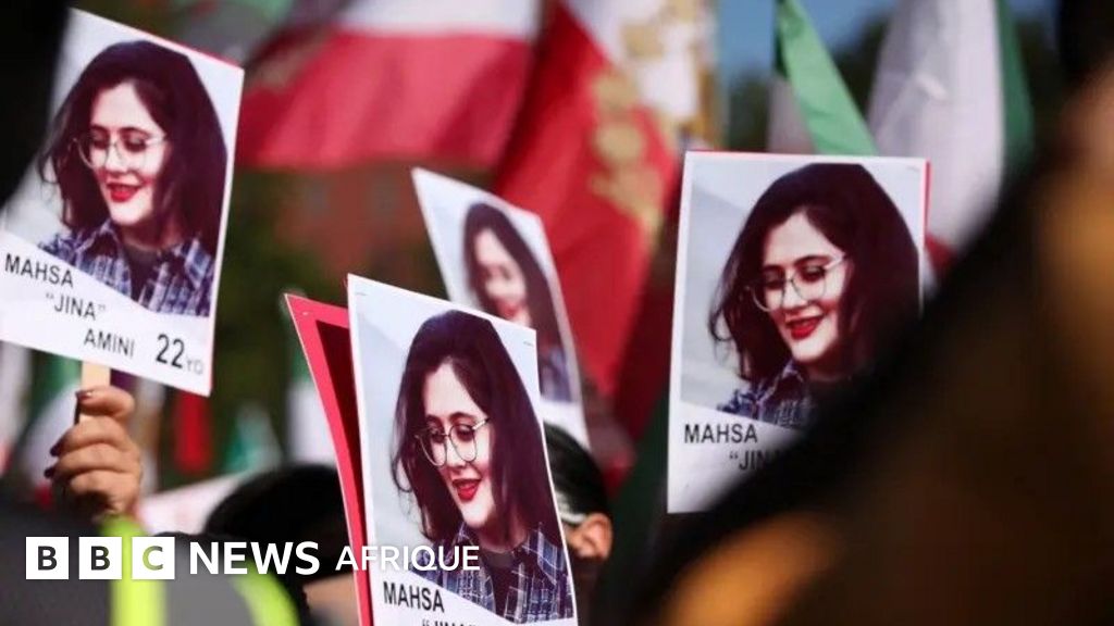 Légende image, La mort de Mahsa Amini en 2022 a suscité une vague d'indignation mondiale contre la répression des femmes en Iran.