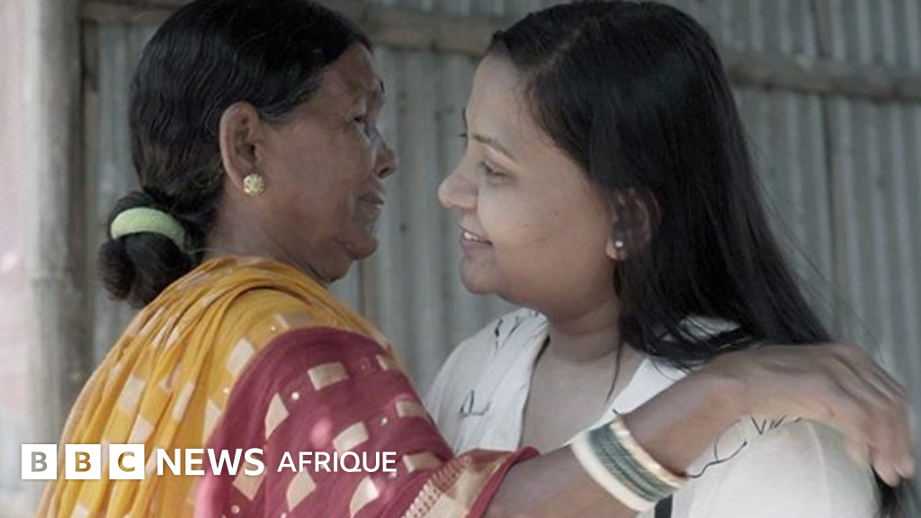 Siro Devi, sage-femme, s'accroche à Monica Thatte en sanglotant. Monica, âgée d'une vingtaine d'années, est revenue dans sa ville natale, la ville indienne où Siro a mis au monde des centaines de bébés.