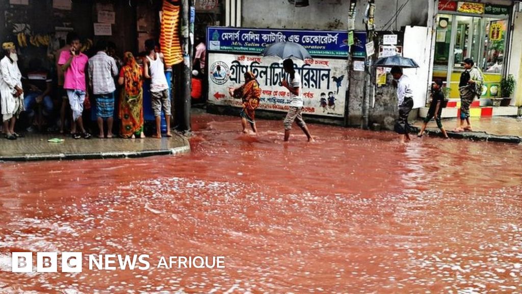 Le sang provient d'animaux sacrifiés pour la célébration de l'Aïd. Celui-ci a été mélangé aux eaux de crues dans certains endroits de la capitale du Bangladesh.