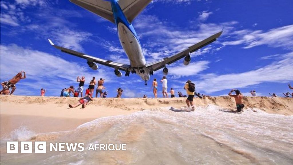 Dans cet aéroport, situé près d'une plage très fréquentée des touristes, les avions volent à très basse altitude à l'atterrissage ou au décollage.