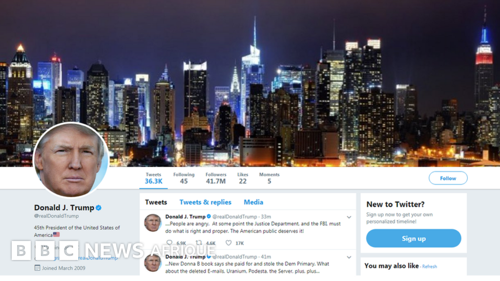 Vers 19H00 (23H00 GMT), les visiteurs du compte @realDonaldTrump ont ainsi été accueillis par le message: "Désolé, cette page n'existe pas".