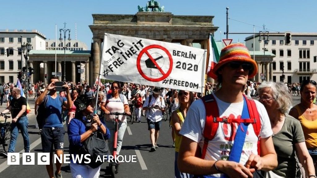 Des milliers de personnes dans la capitale allemande, Berlin, ont participé à une manifestation contre les restrictions du pays en matière de coronavirus.
