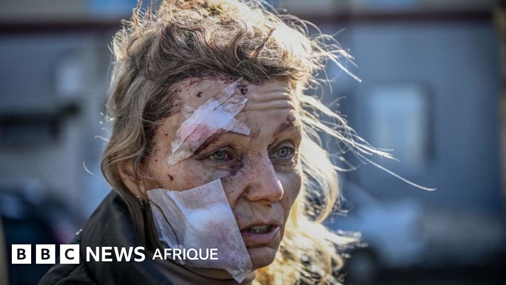Légende image, Les affirmations selon lesquelles les images de cette femme blessée à Tchougouivson proviennent d'une explosion de gaz en Russie en 2018 sont incorrectes.