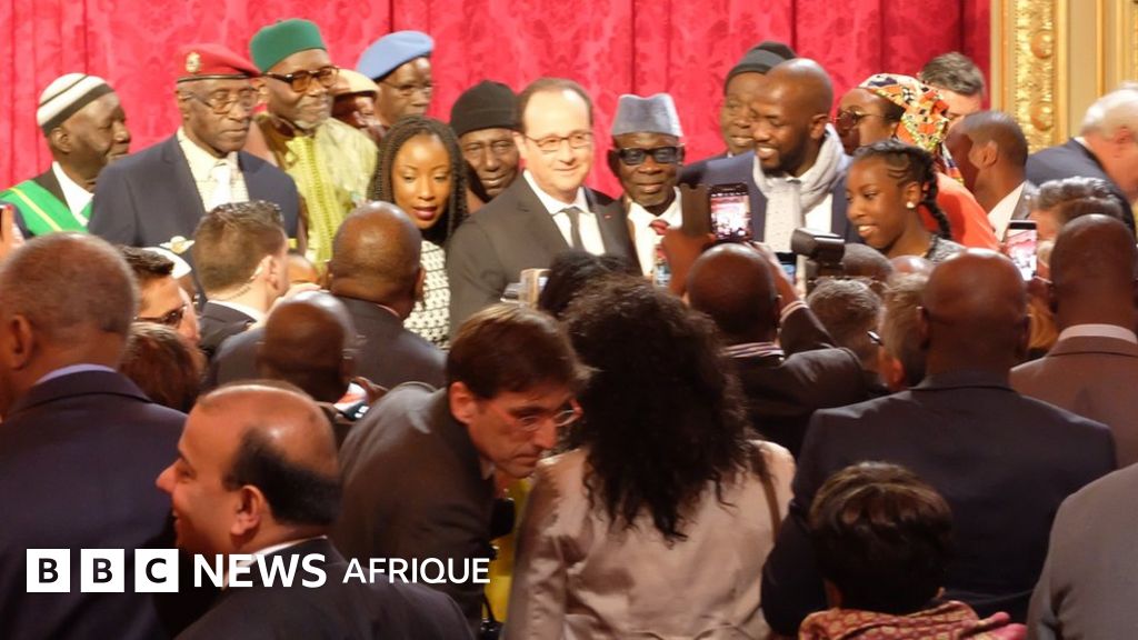La cérémonie s'est déroulée sous les ors de la salle des fêtes du palais de l'Élysée. Dans le groupe, figurent 23 Sénégalais, deux Congolais, deux Centrafricains et un Ivoirien.