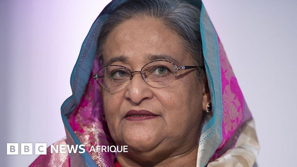 Légende image, Sheikh Hasina, la Première ministre du Bangladesh, s'est envolée pour New York