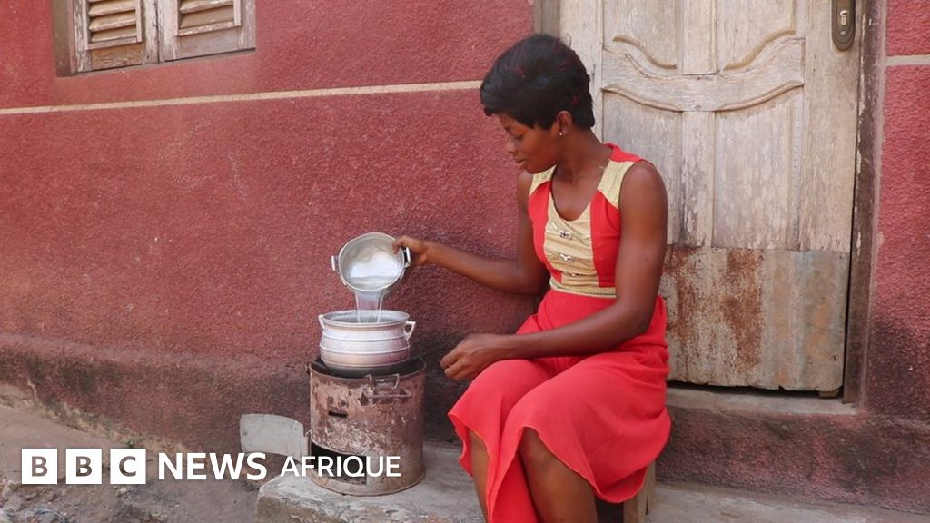 Sur un fourneau artisanal fait à base d'aluminium, Aka Allé Lydie fait cuire du poisson avec quelques morceaux d'un combustible en forme de petites madeleines.