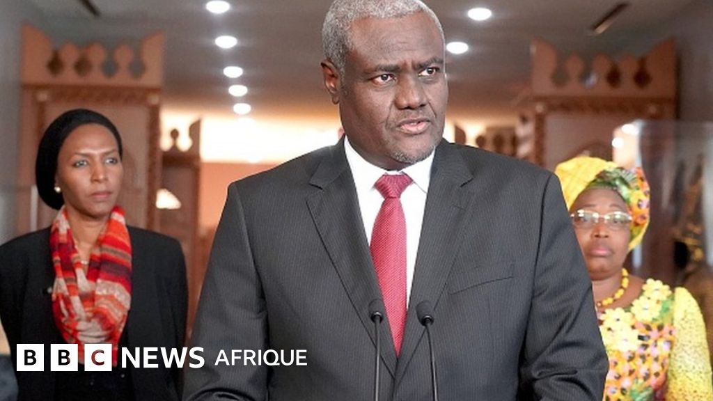 Légende image, Moussa Faki le patron de l'UA demande fermement aux autorités chinoises de protéger les ressortissants africains victimes d'exactions en Chine