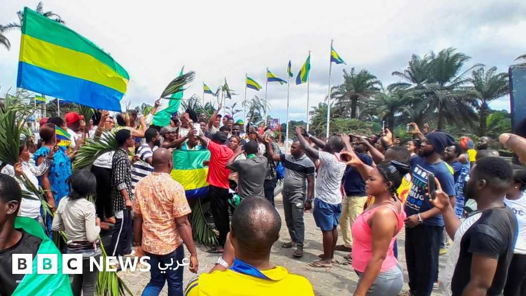 التعليق على الصورة، مؤيدون للانقلاب في الغابون يحتفلون به