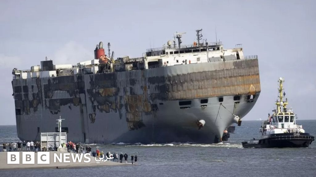 سحب سفينة شحن السيارات المحترقة "فريمانتل هايواي" إلى ميناء هولندي دون حدوث كارثة