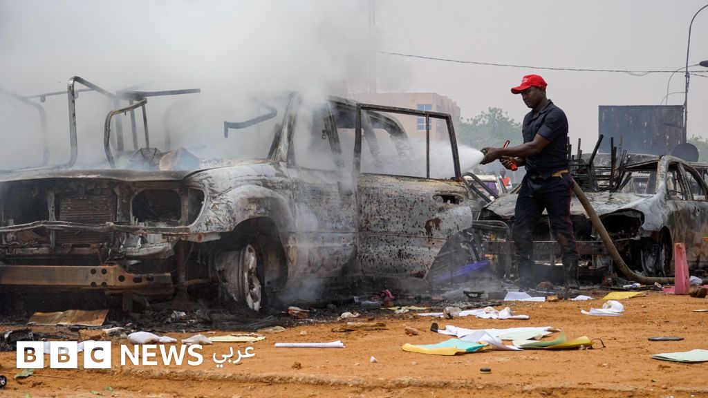 هاجم أنصار الانقلاب في النيجر، مقر حزب الرئيس المعزول وأضرموا فيه النيران ورجموا السيارات في الخارج بالحجارة وأحرقوها