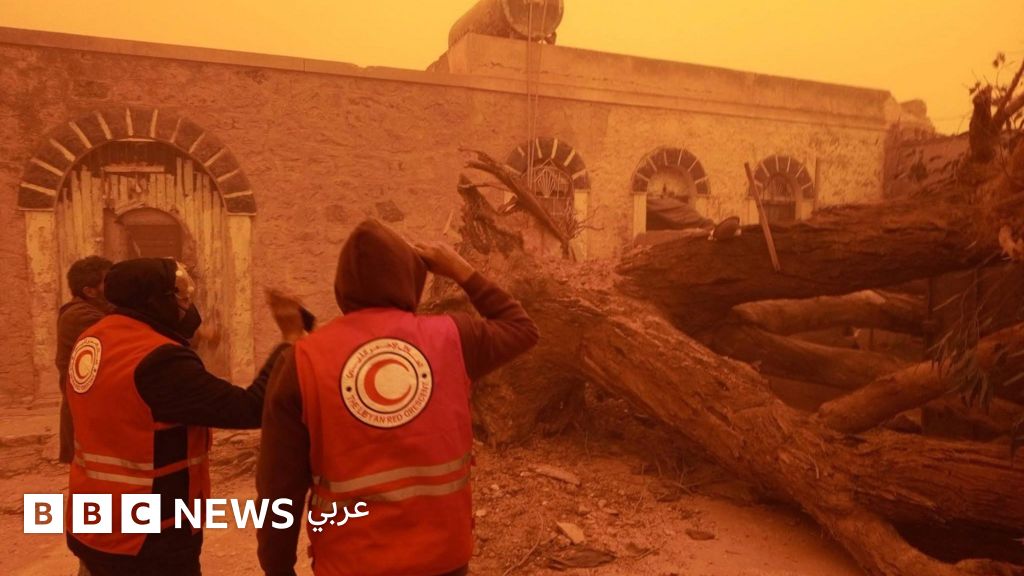 ففي ليبيا ننشر مستخدمون على وسائل التواصل الاجتماعي، صوراً تُظهر تحطم سيارات وتساقط أعمدة إنارة في مدينة بنغازي.