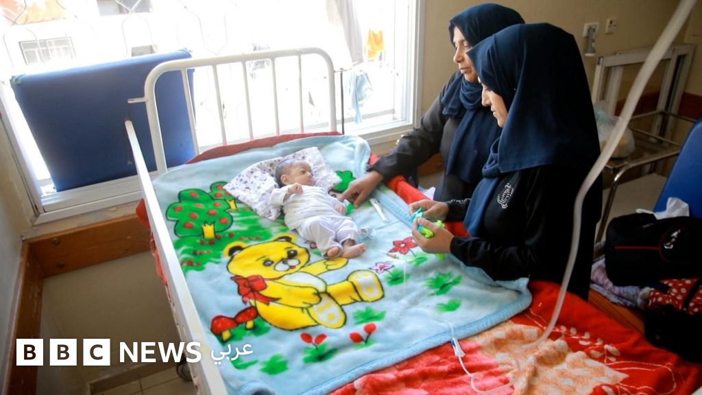 خرج الطفل من غرفة العناية الفائقة، حيث يعاني من جفاف حاد بسبب سوء التغذية، ويحتاج لنوع خاص من الحليب الصناعي غير المتوفر في القطاع.
