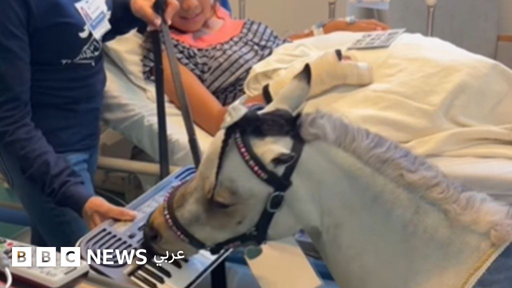 ترافق خيول صغيرة أطفالًا مرضى داخل مركز طبي بكاليفورنيا، في مبادرة للعلاج النفسي عبر الترفيه وتخفيف الخوف خلال تلقي العلاج. ولاقت التجربة تفاعلًا واسعا على المنصات