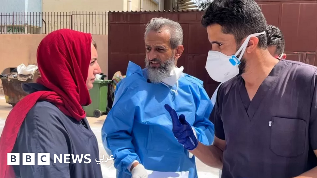 في مرأب للسيارات بأحد مستشفيات مدينة درنة شرقي ليبيا، يتم بعناية فحص وتسجيل تفاصيل الجثة التي عُثر عليها من بين جثث أخرى.