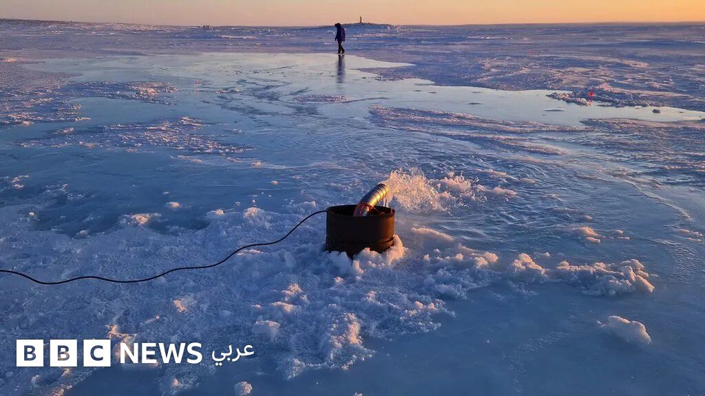 ويقوم العلماء بحفر حفرة في الجليد البحري الذي يتشكل بشكل طبيعي في الشتاء، ويضخون حوالي 1,000 لتر من مياه البحر في الدقيقة عبر السطح.