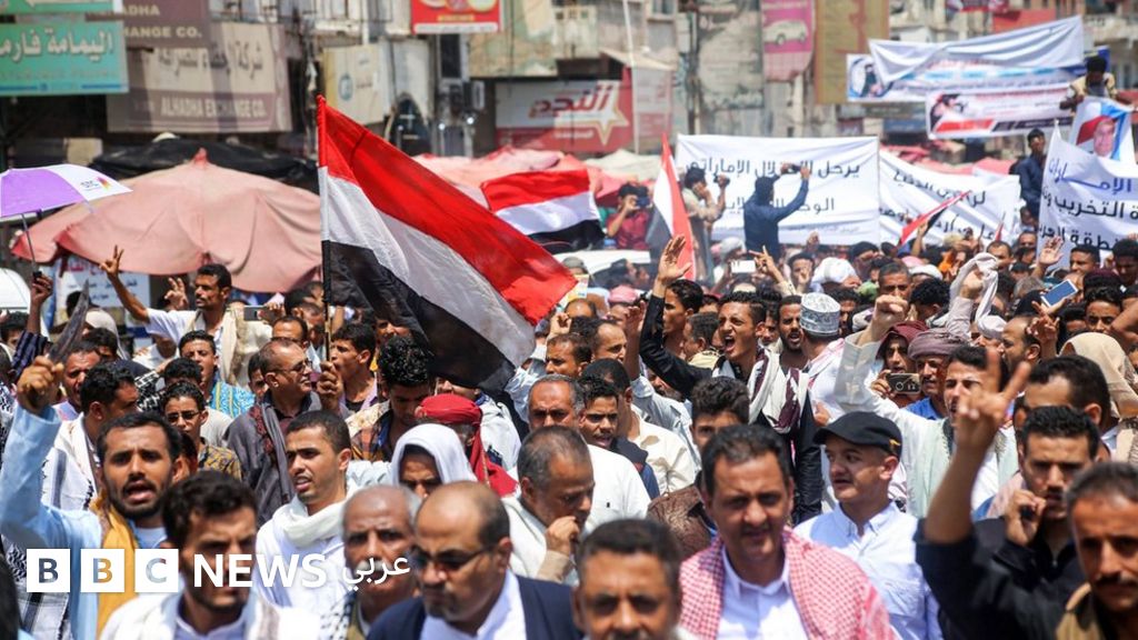 تظاهرات لليمنيين في تعز تطالب بإخراج الإمارات من اليمن بعد ضرباتها الجوية الأخيرة لعدن