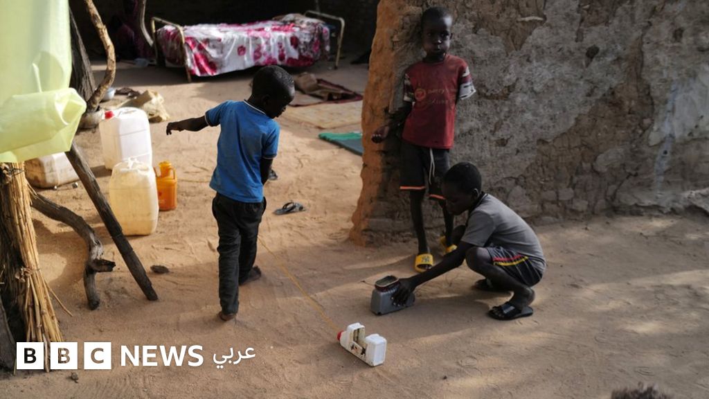 أطفال سودانيون فروا من العنف يلعبون في ساحة منزل عائلة تشادية