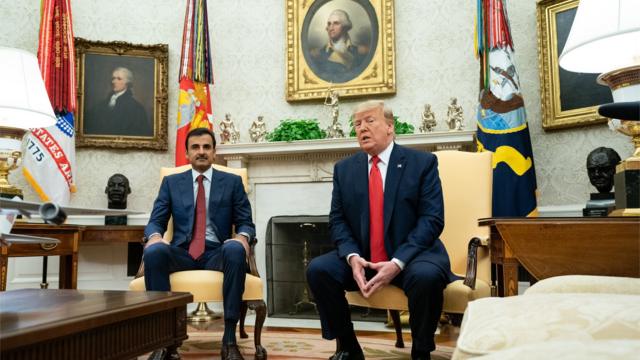 تصريحات الأمير القطري أثناء زيارته لواشنطن ولقائه الرئيس الأمريكي دونالد ترامب.