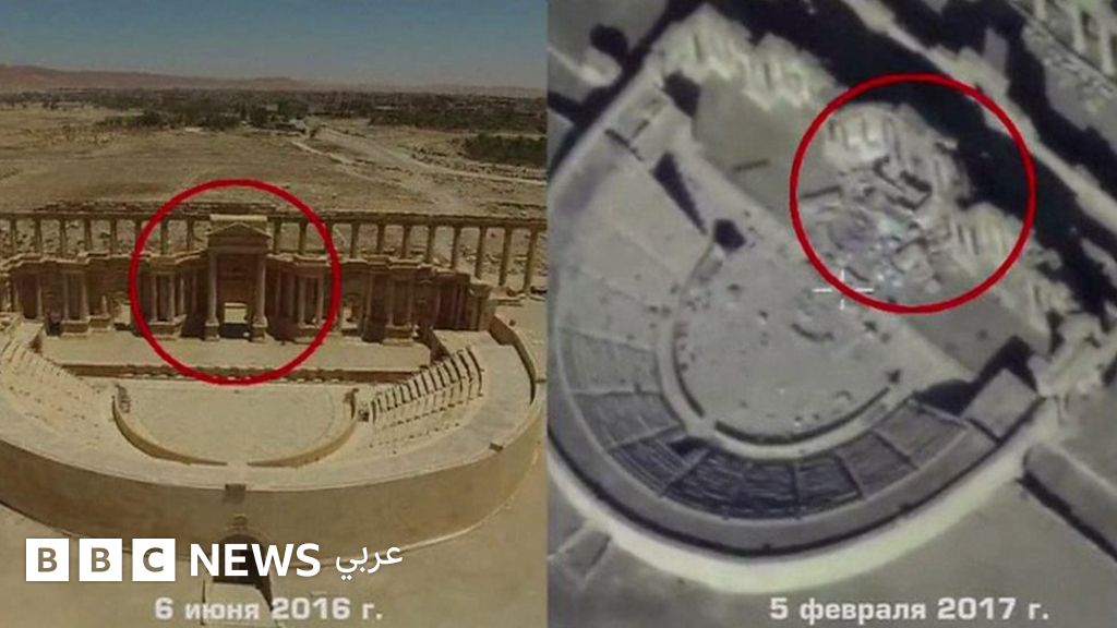 بثت وزارة الدفاع الروسية صورا، التقطتها طائرات بلا طيار، للدمار الذي ألحقه تنظيم الدولة الإسلامية بالمواقع الأثرية في مدينة تدمر في سوريا.