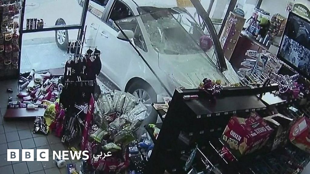 كاميرا مراقبة ترصد لحظة اقتحام سيارة أحد المتاجر