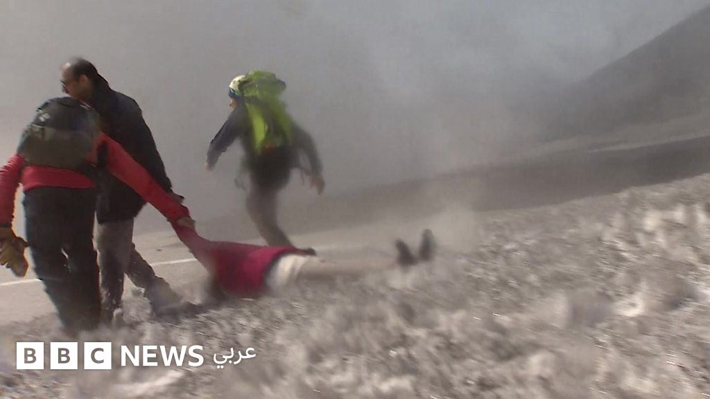 فيديو يوضح اللحظة التي حوصر فيها طاقم بي بي سي أثناء ثوران بركان إتنا .