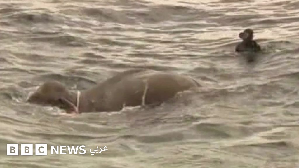 إنقاذ فيل كاد يغرق على مسافة 16 كيلومترا من الشاطئ