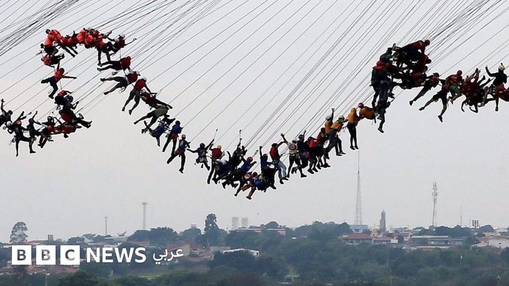 قفزت سلسلة بشرية مؤلفة من 245 شخصا من فوق جسر في مدينة هوتولانديا على بعد ساعة من مدينة ساو باولو بالبرازيل.