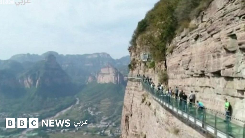 افتتح جسر زجاجى معلق بمقاطعة خبي، شمالي الصين مصمم بتكنولوجيا تجعله يبدوا كأنه يتصدع.