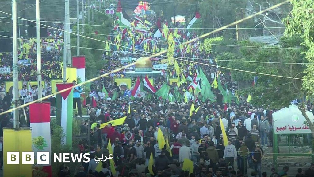 تجمعت حشود كبيرة في الضاحية الجنوبية من بيروت للاستماع إلى خطاب ألقاه زعيم حزب الله حسن نصر الله للإعراب عن رفض قرار الرئيس الأمريكي دونالد ترامب الاعتراف بالقدس عاصمة لإسرائيل.