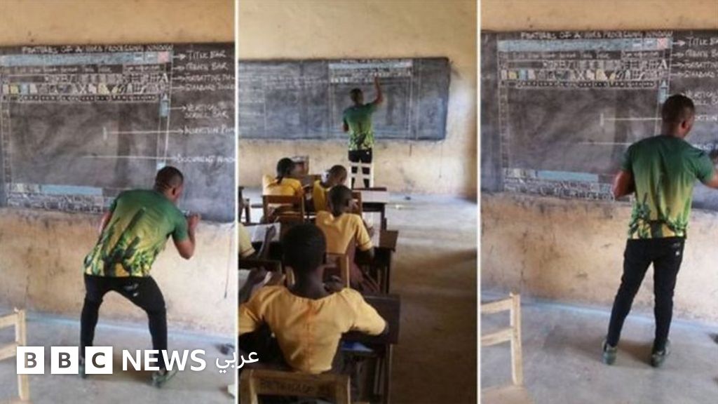 أثار معلم في غانا اهتمام الانترنت بعد تدريسه الحاسب الآلي باستخدام الرسم على لوح التدريس لافتقار الموارد.
