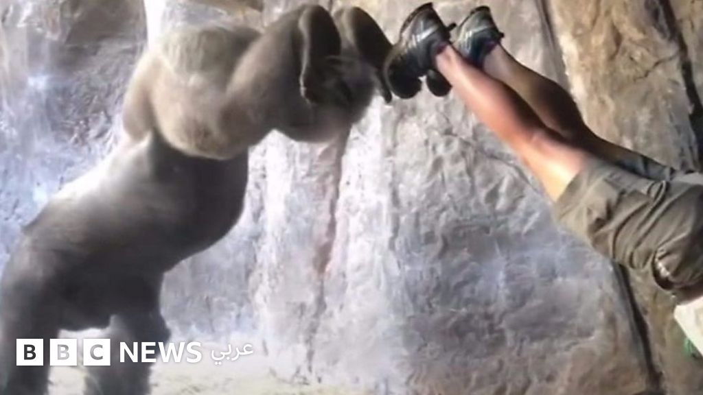 غوريلا يتعلم الوقوف على يديه