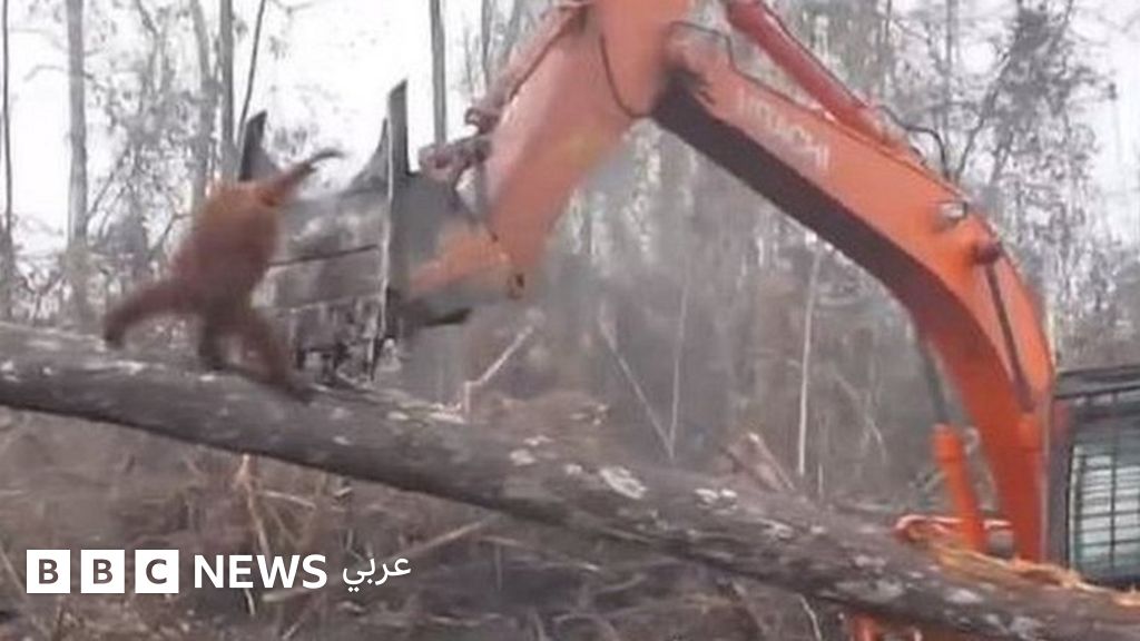 وثق مقطع فيديو اللحظات التي تصدى فيها، قرد أورانغوتان المعروف بـ "إنسان الغاب" لجرافة كانت تقتلع الأشجار في إحدى غابات إندونيسيا، التي هي هذا الحيوان.