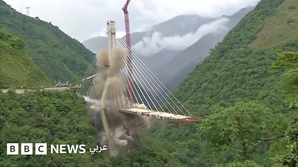 لحظة تدمير جسر تحت الإنشاء فى كولومبيا