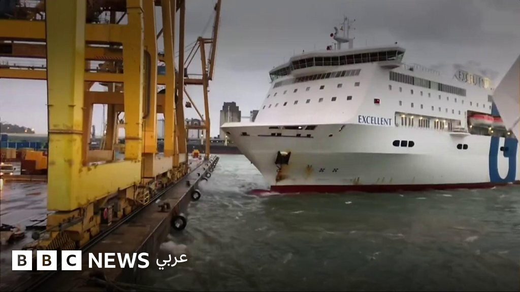 اصطدمت سفينة ركاب تصطدم برافعة ضخمة في ميناء برشلونة في إسبانيا
