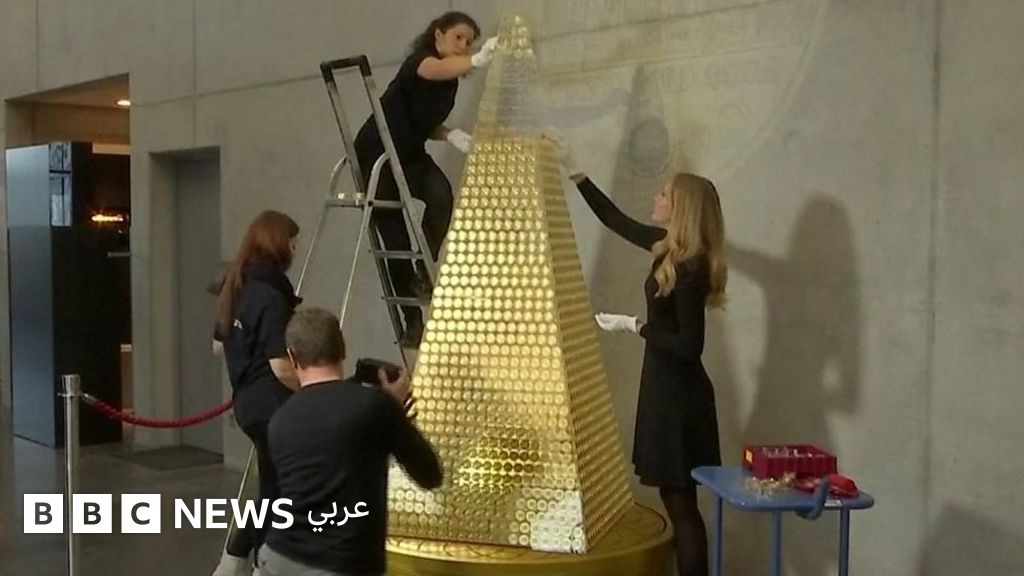 متجر برو أوروم في المانيا يزين شجرة كريسماس ب 2018 عملة ذهبية، ما يجعلها أغلى شجرة أعياد ميلاد في اوروبا.