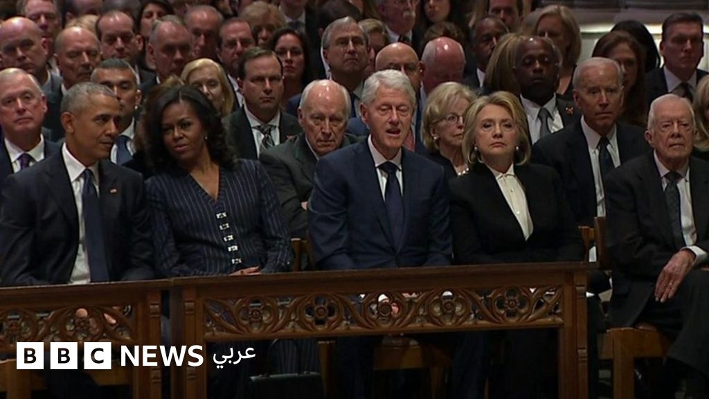 صافح الرئيس الأمريكي دونالد ترامب، الرئيس السابق باراك أوباما وزوجته ميشيل، فيما تجاهل الرئيس السابق بيل كلينتون وزوجته هيلاري أثناء مراسم جنازة الرئيس الأمريكي السابق جورج بوش الأب.