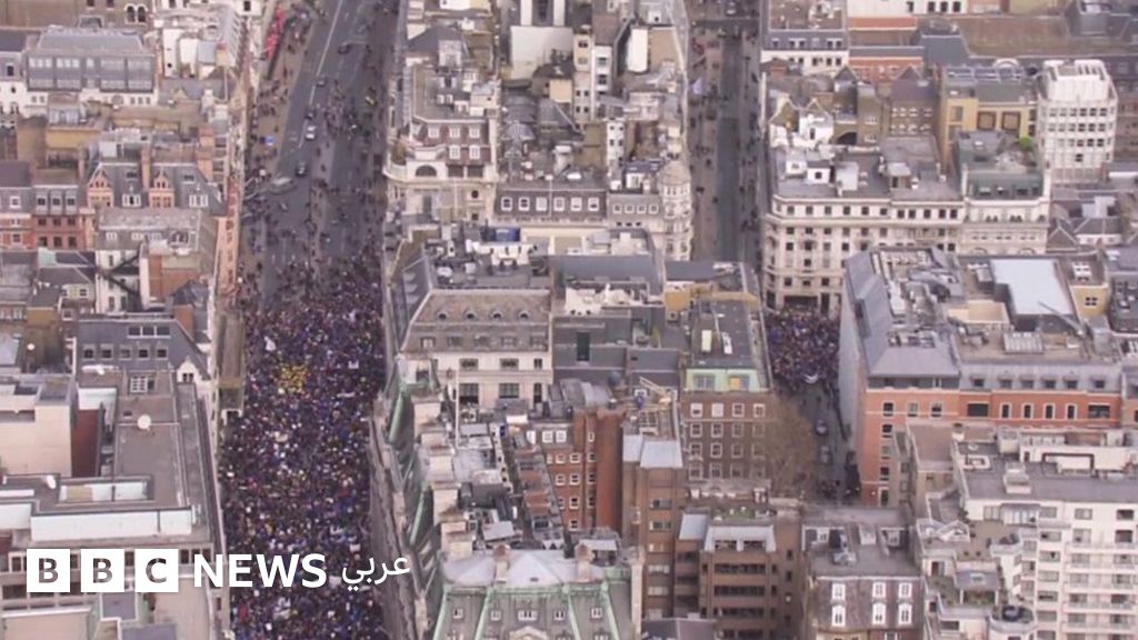 شارك مئات الآلاف في مسيرة وسط لندن للمطالبة باستفتاء جديد على خروج بريطانيا من الاتحاد الأوروبي (بركسيت)، بينما يبحث أعضاء البرلمان عن مخرج من الأزمة.