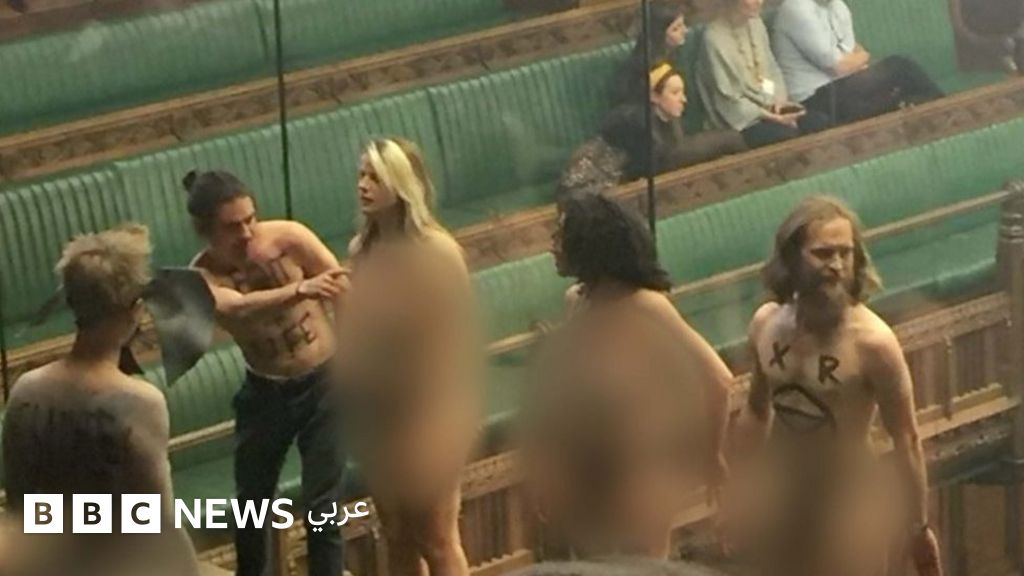 ناشطون شبه عراة يقاطعون جلسة البرلمان البريطاني حول أزمة بريكست