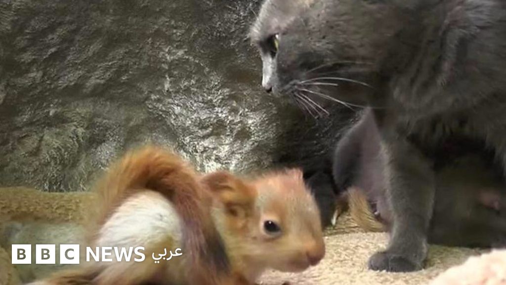 قطة ترعى سناجب يتامى