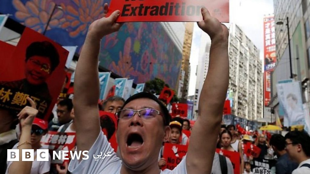 تظاهر مئات الآلاف في شوارع هونغ كونغ احتجاجا على مشروع الحكومة المتعلق بتعديل قانون تسليم المتهمين، ما سيسمح بتحويل المشتبه بهم إلى الصين للمحاكمة.