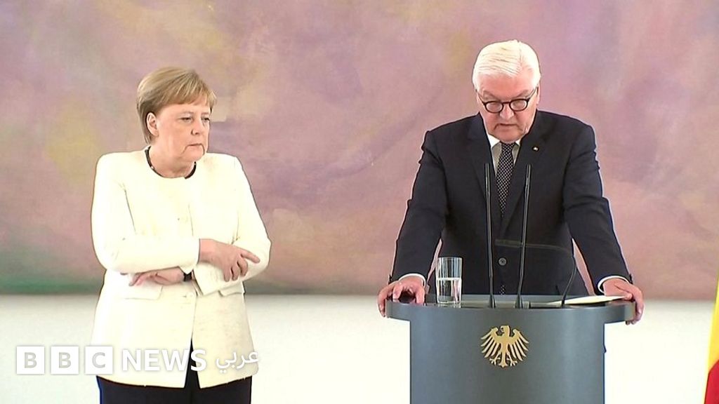مرة أخرى ظهرت المستشارة الألمانية أنغيلا ميركل وهي ترتعش أثناء كلمة للرئيس فرانك والتر شتاينماير.