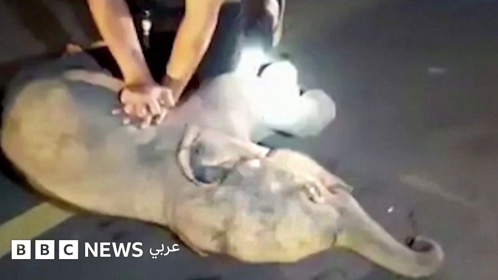 هرع رجل إنقاذ لإجراء إنعاش قلبي رئوي لفيل رضيع بعد أن صدمته دراجة نارية في أحد الطرق في تايلاند.