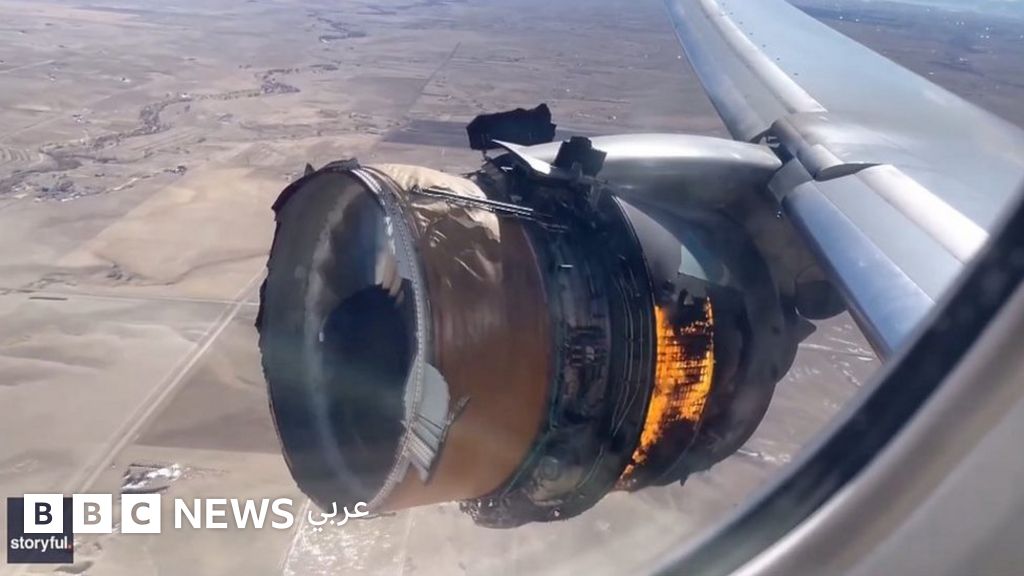 احترق محرك طائرة بوينج 777 بعد إقلاعها وتناثر الحطام فوق منطقة سكنية بالقرب من دنفر، كولورادو.