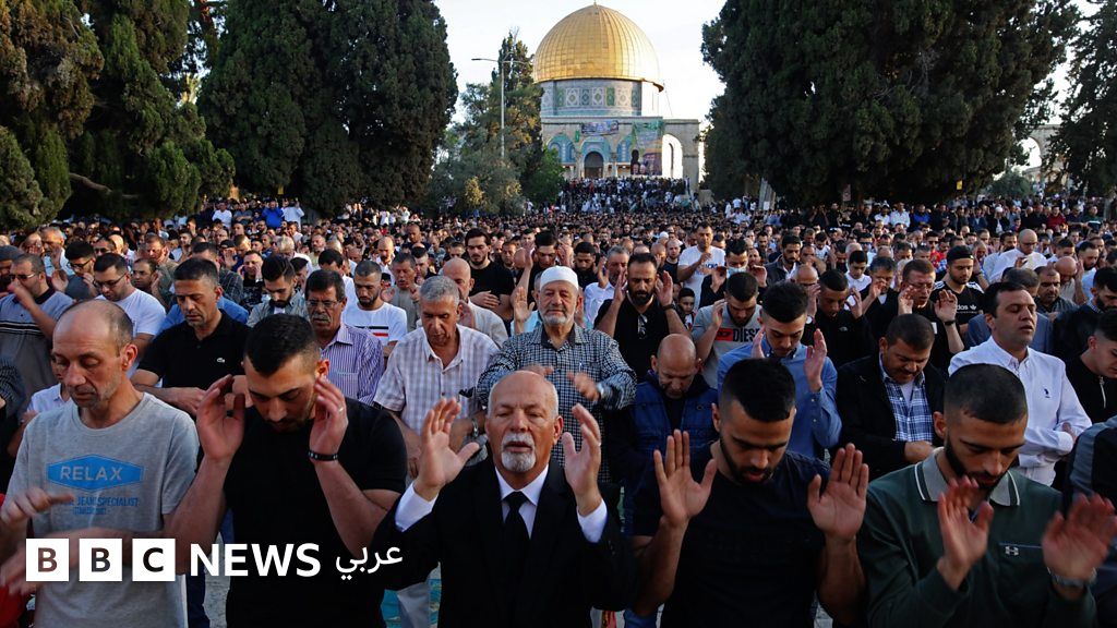 تجمع نحو 100 ألف مصل لأداء صلاة عيد الفطر في ساحة المسجد الأقصى.