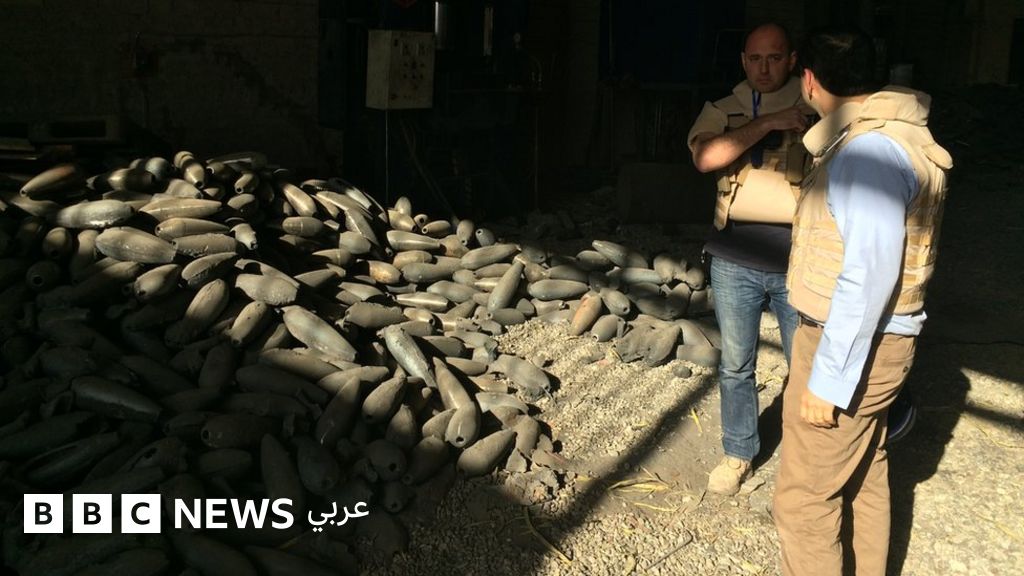 وشوهدت أجزاء صواريخ مبعثرة على أرضية المكان، وعلى مقربة من وعاء مواد كيمائية عثر الفريق على "وصفة" مكتوبة بخط اليد لعمل مزيج من المتفجرات.