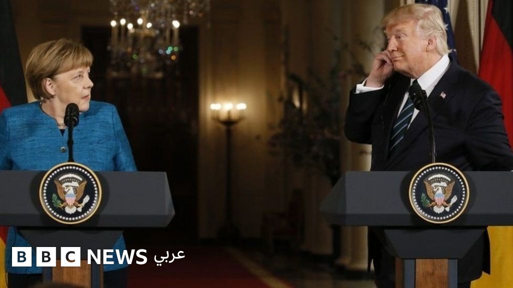 التعليق على الصورة، ترامب في مؤتمر صحفي مشترك مع ميركل في البيت الأبيض