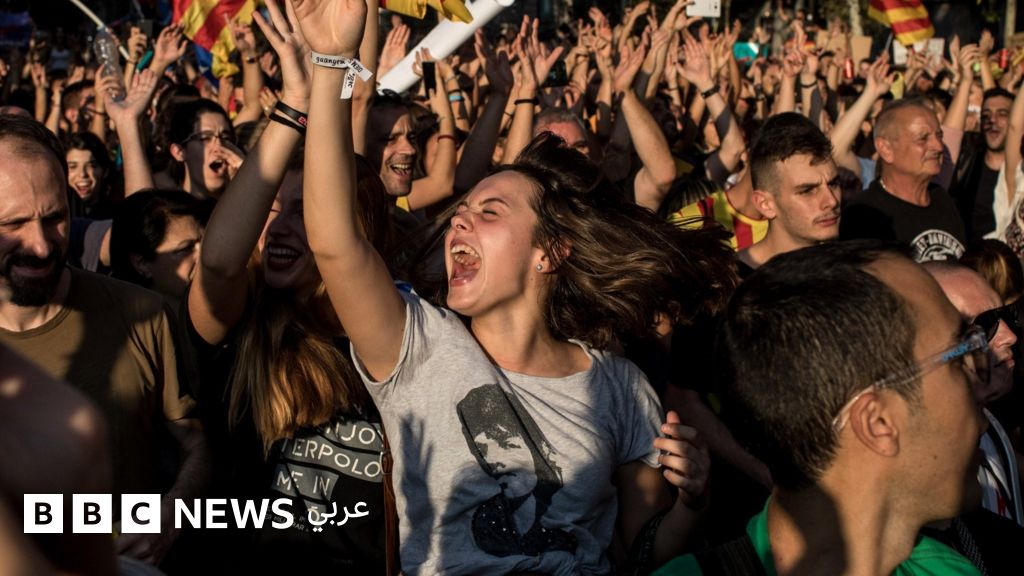 وكانت حشود خرجت في احتجاجات ضخمة في أنحاء كاتالونيا، وخرج 700 ألف شخص في برشلونة وحدها إلى الشوارع، حسبما نقلت وكالة فرانس برس عن مصادر في شرطة المدينة.