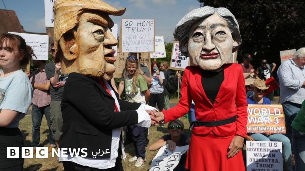 في تلك الأثناء، خرجت مجموعة من النساء ينتمين إلى جماعات مختلفة في مظاهرات مناهضة لترامب وسط العاصمة لندن.